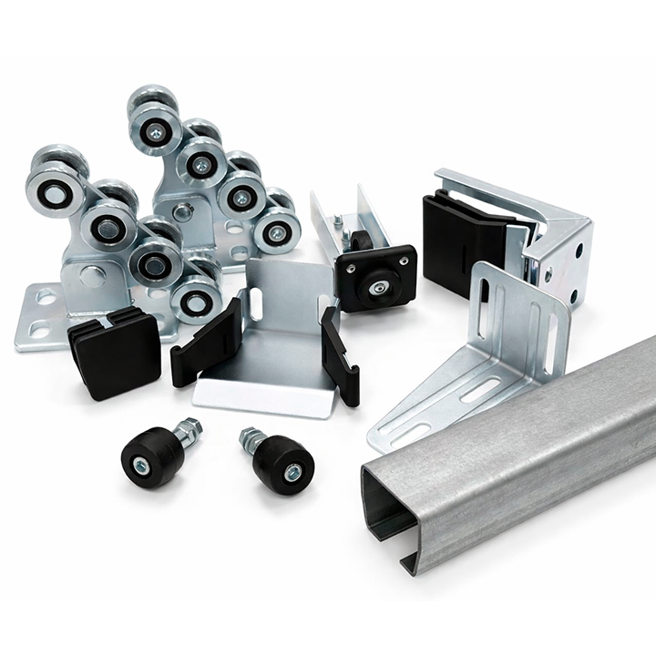 • Плавный ход створки: опорные и поддерживающие ролики в сочетании с концевым роликом облегчают перемещение тяжёлой конструкции.